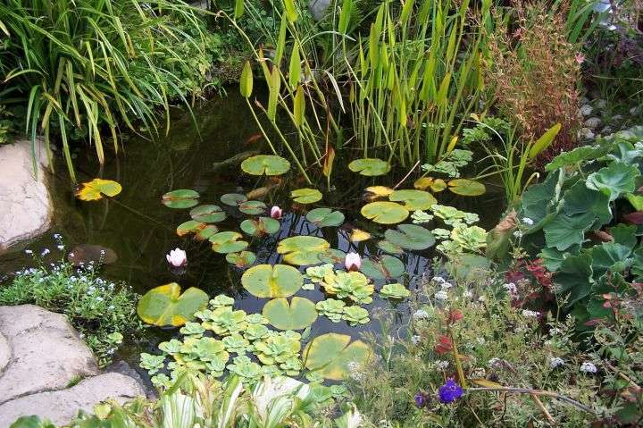 Pas de beau bassin, sans une plétore de plantes;en effet, il faut arriver à faire disparaître la bâche et rendre le coin le plus possible naturel.Bien sur, la nature ne se fait pas en un jour, il faut plusieurs années, de pousse, de coupe ...